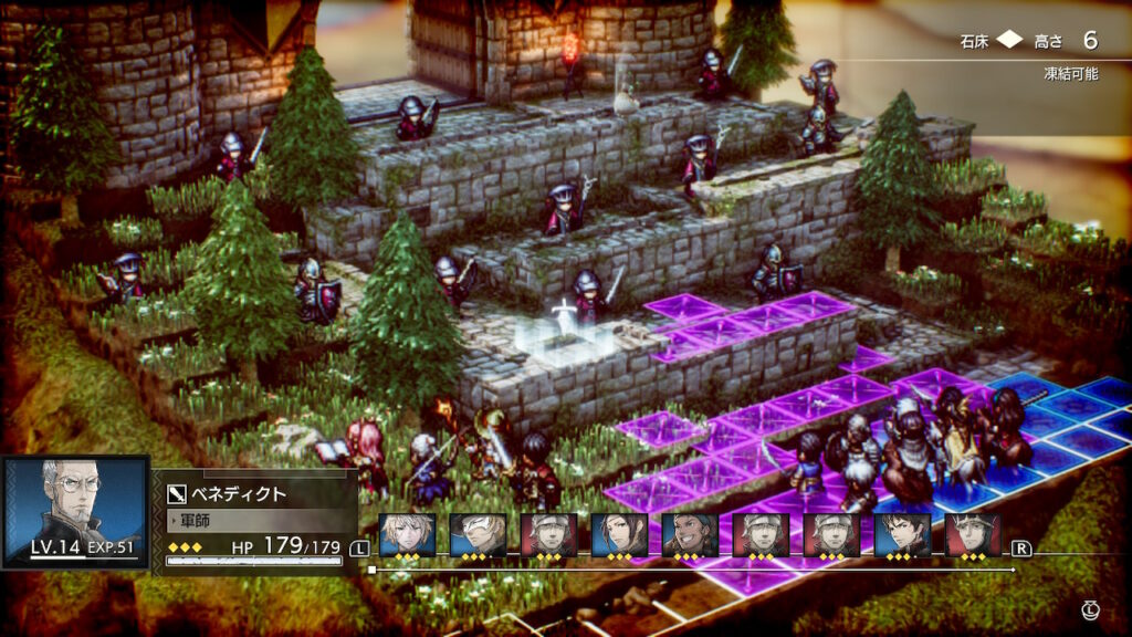 ドット絵+3DGCで描かれるHD-2Dと、キャラクターの向きやステージの角度・高低差等の描写が重要となるシミュレーションRPGは相性抜群です。