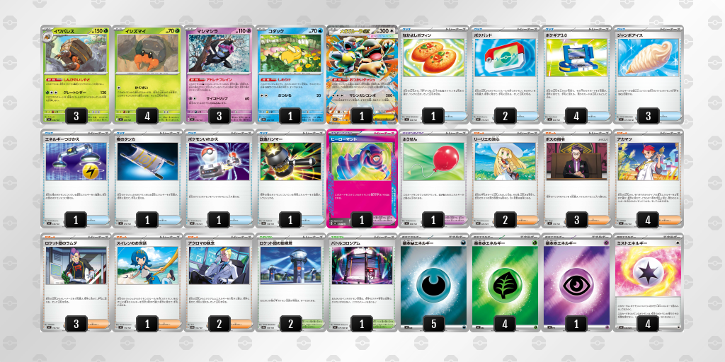 レギュ落ち後もゴージャスマントやボウルタウンと言った補強カードこそ使えなくなるものの、基本的な動きはそこまで変わらないので今までと似た感覚で使うことができるのではないでしょうか。