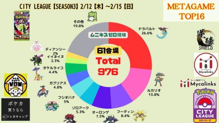 現環境では「ドラパルトex」「メガルカリオex」「フーディン」の3デッキが環境の中心として鎮座しています。